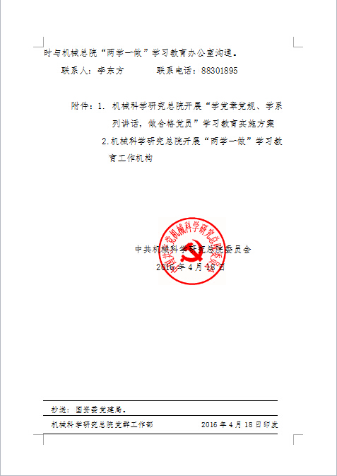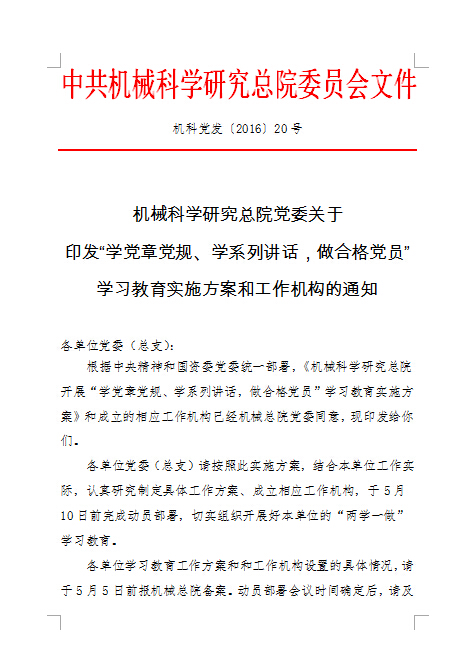 機械科學研究總院黨委關于印發“學黨章黨規、學系列講話,做合格黨員”學習教育實施方案和工作機構的通知
