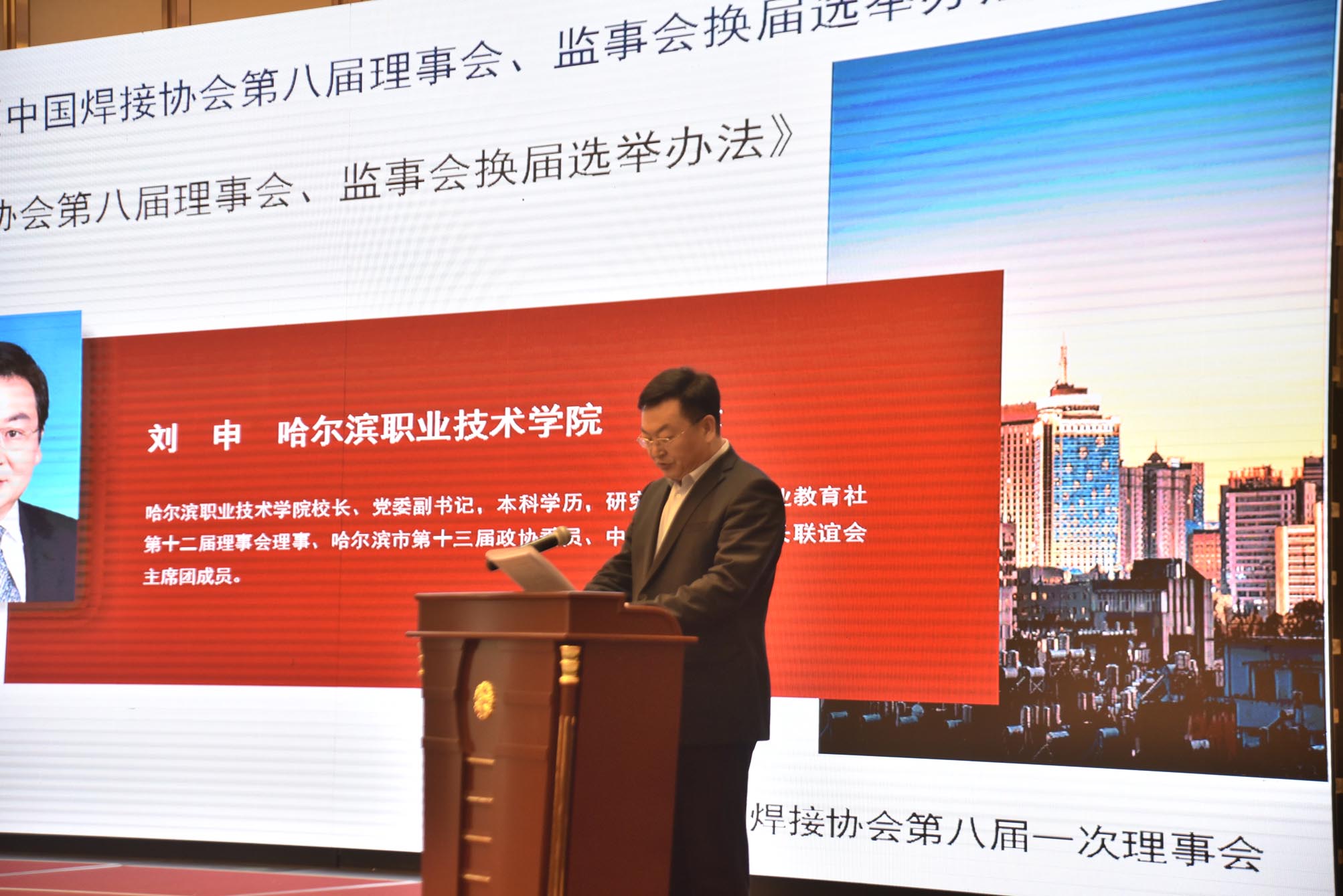 哈爾濱職業技術學院校長劉申宣讀了《中國焊接協會第八屆理事會、監事會換屆選舉辦法》,大會對該選舉辦法沒有異議,鼓掌通過。