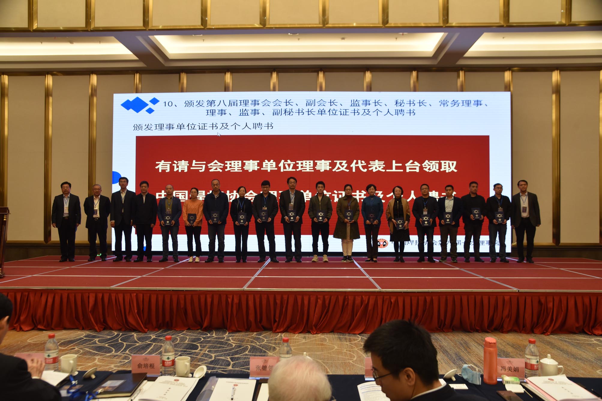隨后大會進入頒發第八屆理事會會長、副會長、監事長、秘書長、常務理事、理事、監事、副秘書長單位證書及個人聘書環節。