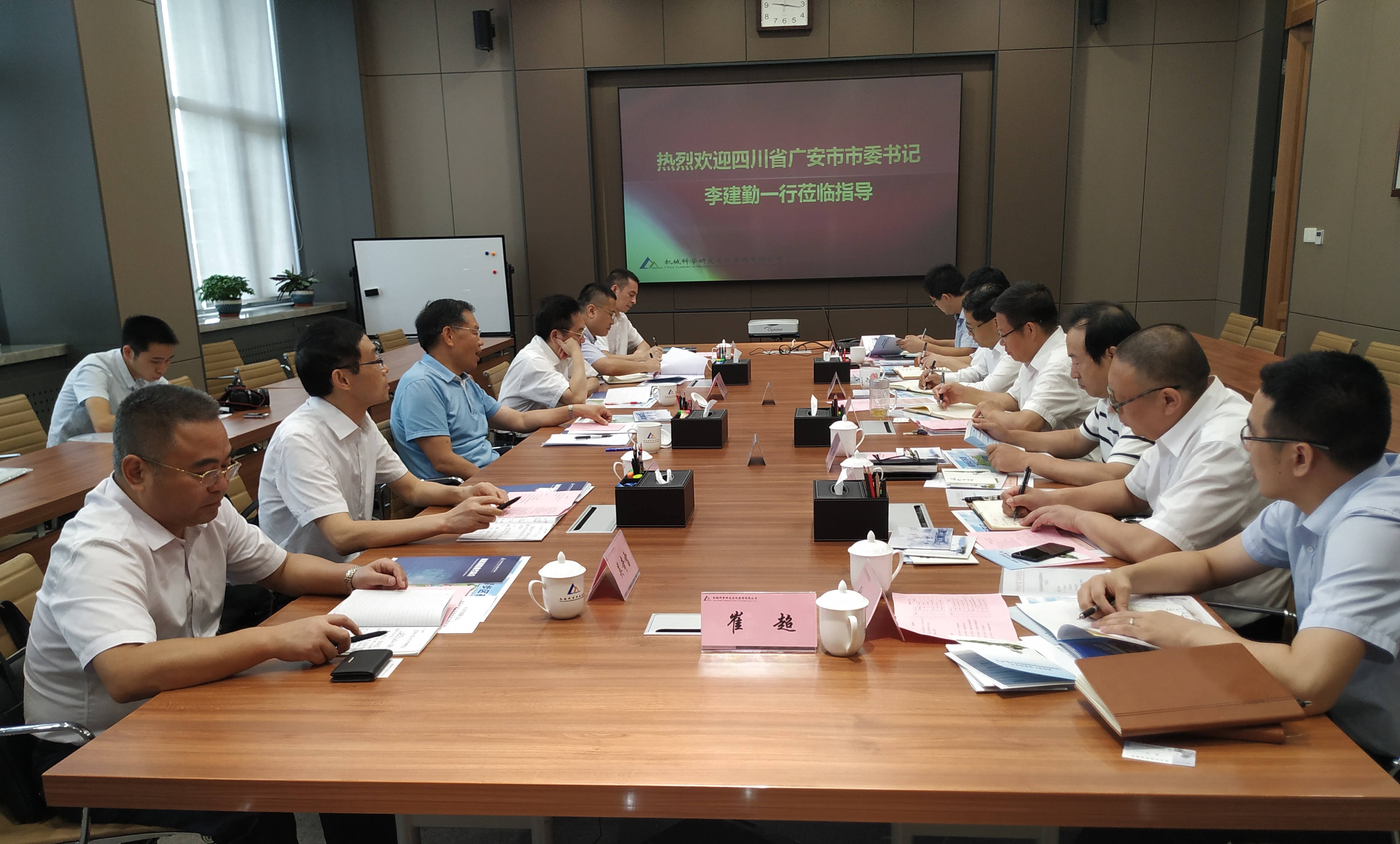 2019年8月12日上午,四川省廣安市市委書記李建勤一行到訪機(jī)械總院集團(tuán)。集團(tuán)黨委書記、董事長(zhǎng)、總經(jīng)理王德成熱情接待了來(lái)訪客人并進(jìn)行了會(huì)談交流,黨委委員、副總經(jīng)理單忠德主持會(huì)議。